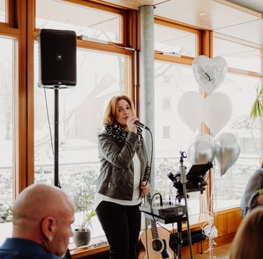 Bettina hat unsere standesamtliche Trauung und den Sektempfang im Anschluss musikalisch umrahmt. Wir und auch unsere Gäste waren begeistert. Sie hat eine tolle Stimme, ist sehr freundlich und unkompliziert. Für uns hat sie sogar extra noch einen Song einstudiert.